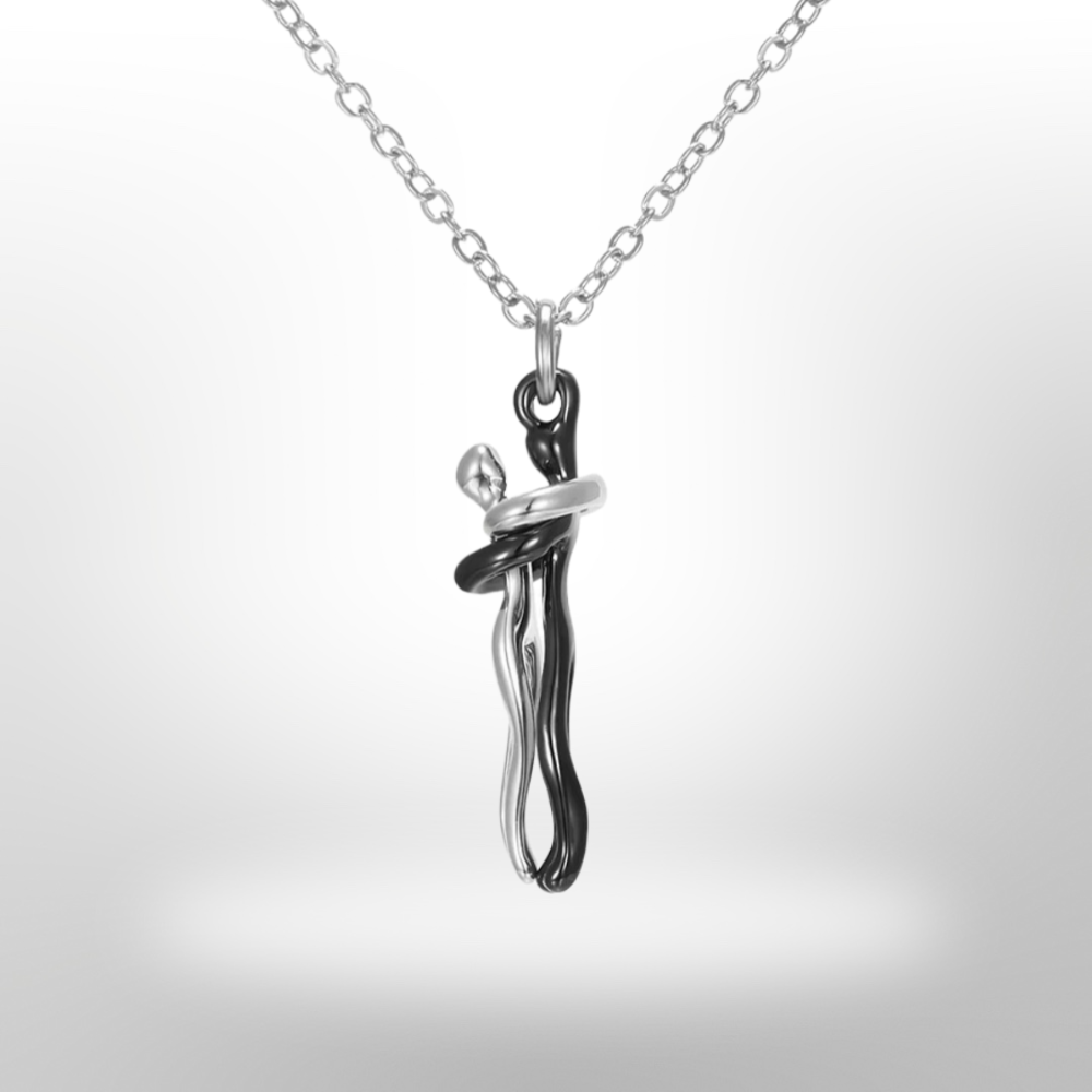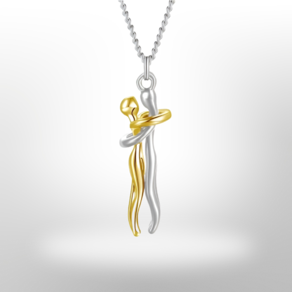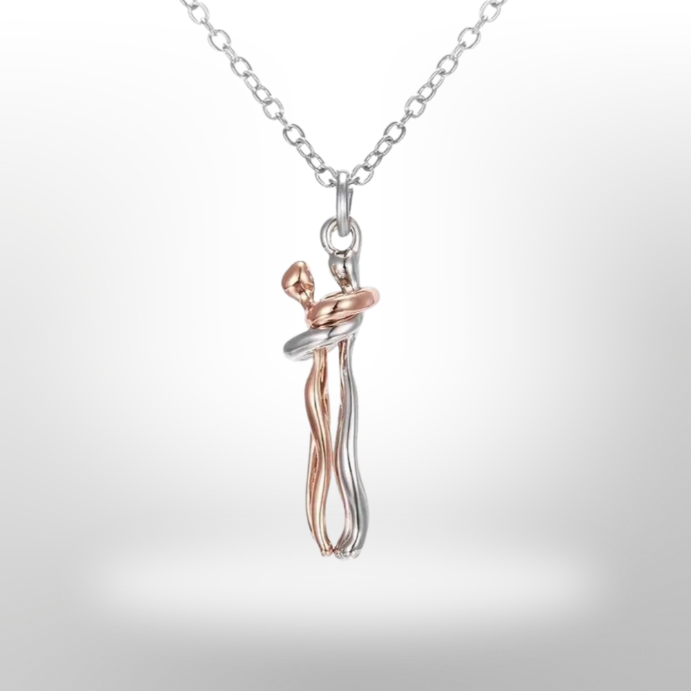 Zwei Figuren, vereint in einer zarten Umarmung, stehen für eure Verbundenheit – Nähe, auch wenn euch Distanz trennt.